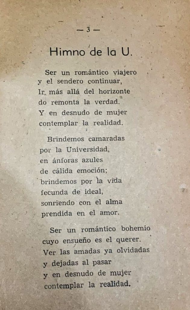 Texto dedicado a la memoria de los románticos viajeros de 1933. ¡Brindemos camaradas por la Universidad!